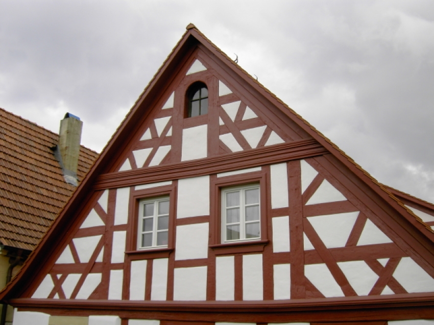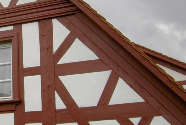 Das erdgeschossige Fachwerkhaus, dass vermutlich aus dem 18.Jahrhundert stammt, steht giebelständig zur Straße im Zentrum von Eggolsheim. Das Fachwerk an der Traufseite besteht aus K-Streben mit zweifacher Riegelung. Am Giebel dominieren die stark profilierten, horizontalen Gesimshölzer. Bauzeitliche Details wie die kleine rundbogige Öffnung unter dem First am Giebel und die merkwürdige kleine Öffnung mit einflügeligem Holzladen im Erdgeschoss an der Traufseite zur Stube blieben erhalten. Nicht nur in Details, sondern auch im Gesamteindruck konnte der Erhalt eines typisch fränkischen Bauernhauses in Eggolsheim die Jury überzeugen.