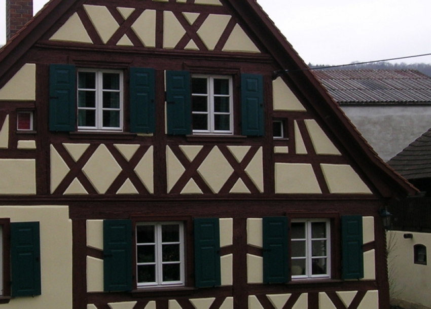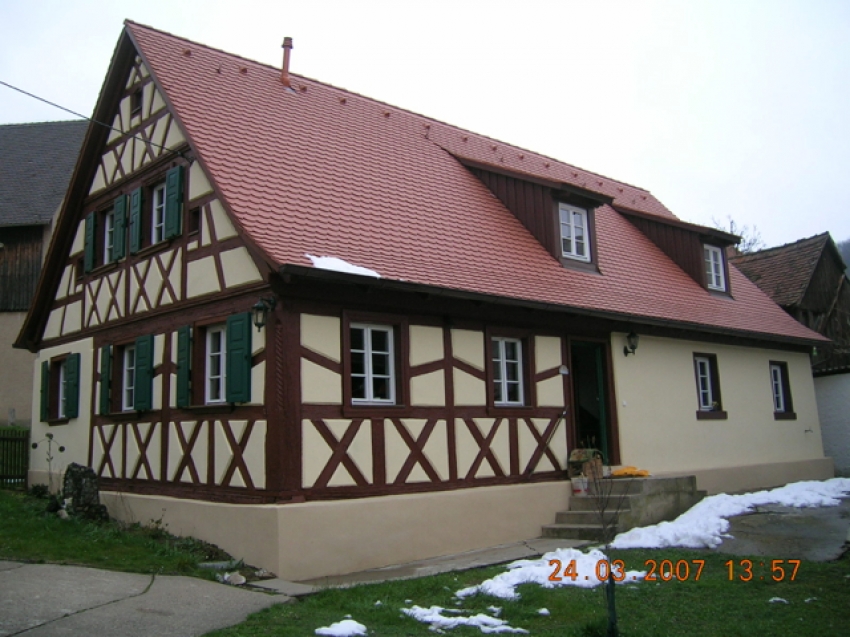 Eingeschossiges Wohnstallhaus aus dem 18. Jahrhundert. Die ehemalige Raumaufteilung im Inneren des Gebäudes bleibt heute noch von außen gut ablesbar. An der Hausecke ein spiralförmiges hölzernes Schmuckband. Schlichte und ehrliche Gestaltung des Umgriffs und des gesamten Anwesens einschließlich der alten Nebengebäude. Haus und Hof haben den ursprünglichen Charakter durch die Sanierung nicht verloren.
