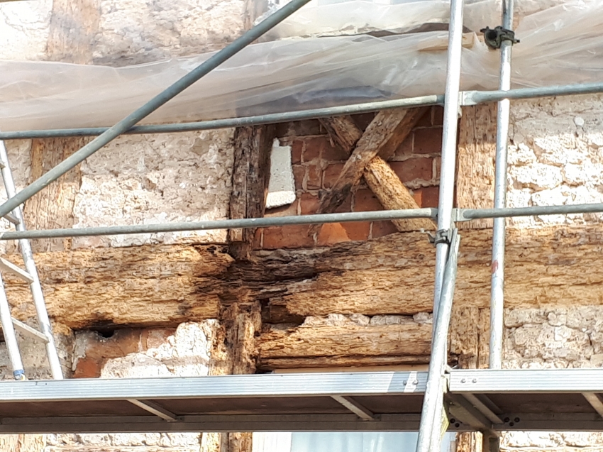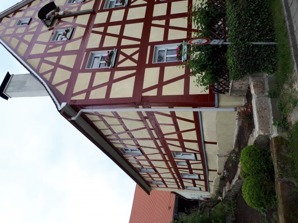 Bei dem Gebäude handelt es sich um ein Bauernhaus aus dem Jahre 1793. Obwohl es sich schon immer in Familienbesitz befindet, ist aus seiner Geschichte ist relativ wenig bekannt. Es soll ursprünglich auch einmal eine Gaststätte gewesen sein, Nachweise dafür gibt es leider nicht. Das zweistöckige Gebäude mit einer Wohnfläche von ca. 300 m2 wird umrahmt von zwei Wirtschaftsgebäuden, was typisch für einen fränkischen Bauernhof war, und war mindestens 100 Jahre vollständig verputzt. Im Haus selbst befindet sich ein Gewölbekeller, der sicherlich noch deutlich älter ist. Im vergangenen Jahr musste ich aufgrund von Schäden durch ein absackendes Fundament und Feuchtigkeitseintritt die Fassade des Hauses renovieren. Ich habe mich entschlossen, nicht nur die Schäden zu beheben, sondern den deutlich aufwändigeren Weg der Wiederherstellung der ursprünglichen Fachwerkfassade gewählt. Dabei habe ich großen Wert darauf gelegt, möglichst nur alte Werkstoffe und Techniken zu verwenden.