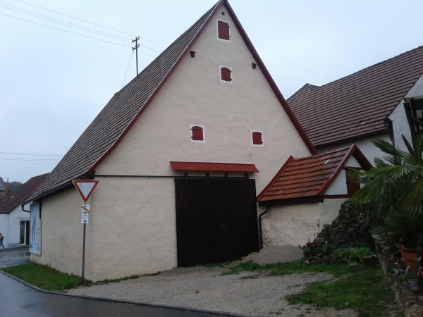 Die Scheune ist der ehemalige Zehendstadel der Tucher in HIltpoltstein. Er wurde 1841 an Privatleute verkauft. Die Tucher haben 1695 ein kleines Haus im Ort gekauft und auf dem Platz den Stadel errichtet. Der Dachstuhl ist eine beeindruckende Zimmermannsarbeit. Vater und Sohn Roßner haben die Fassade in Eigenregie renoviert und Innen gepflastert. Die Scheune wird landwirtschaftlich und handwerklich genutzt.